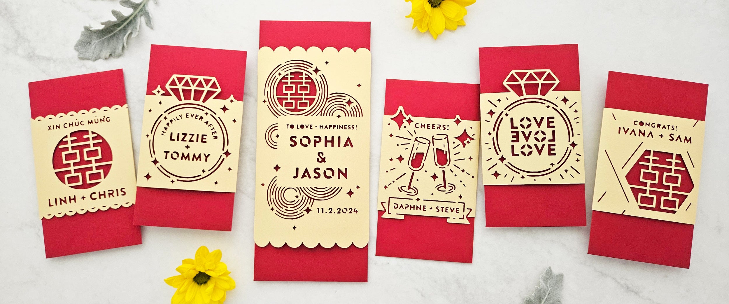 Our customizable modern red envelopes (红包, hongbao) are beautifully designed and handmade with gold...