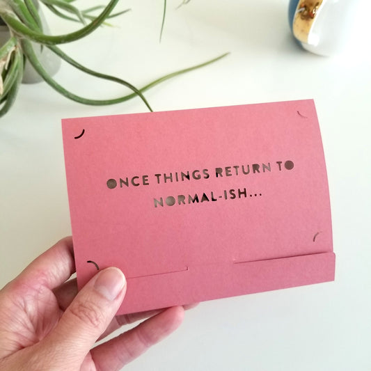Cards can be so many different things—paper, a piece of wood, a pop-up surprise. They can be cute, punny, endearing, or a promise. We love exploring the card experience and hope to delight the giver and receiver with our designs.