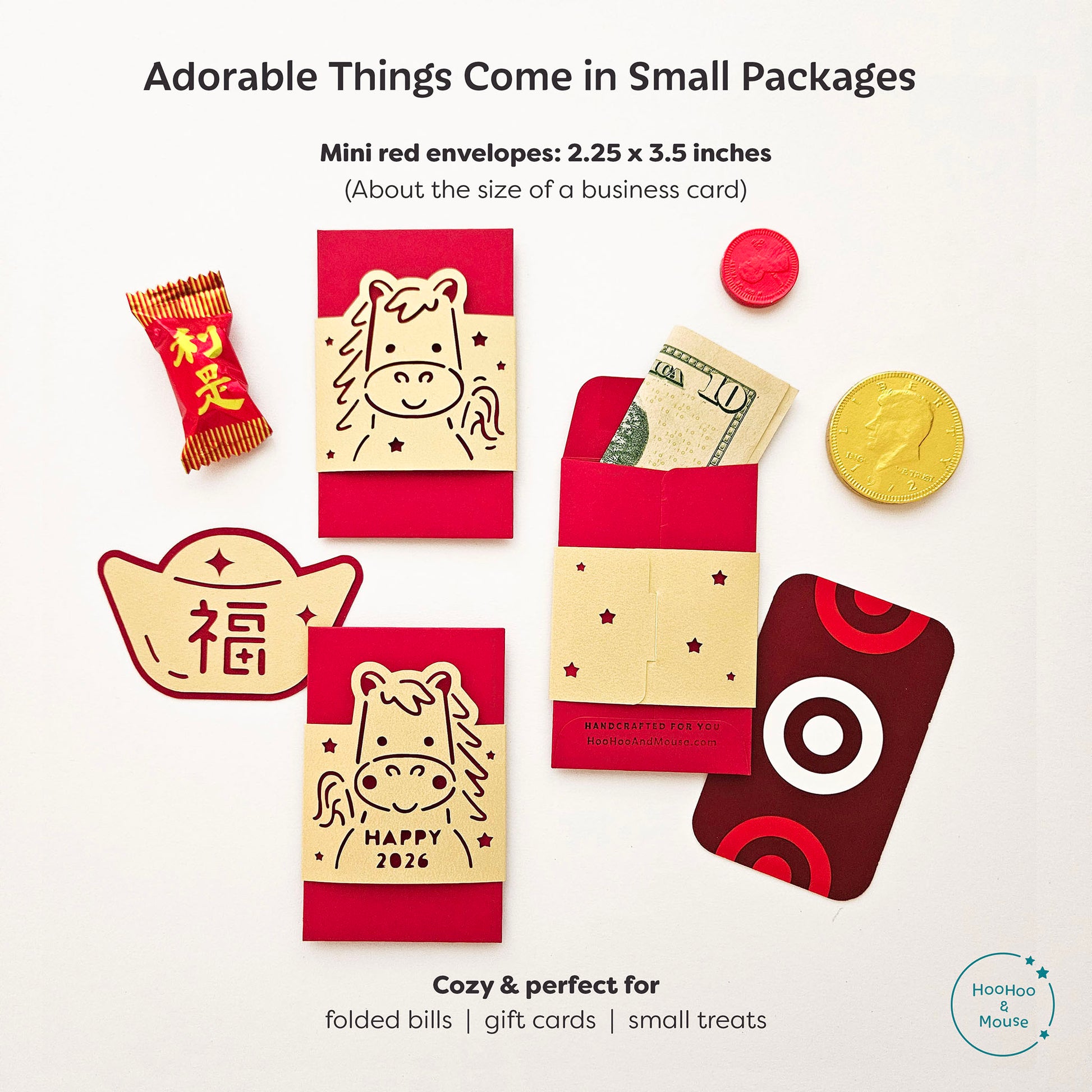 The Year of the Horse has us inspired with absolute cuteness. We created a trio of mini red envelopes full of pony personality. These pint-sized pouches pack a punch of charm and tradition, making them ideal for bestowing good fortune on the young ones at your celebration.